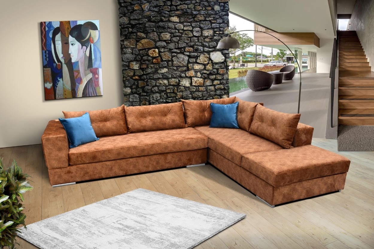 Γωνιακός καναπές με μοντέρνο σχεδιασμό και άνετη κατασκευή, που προσφέρει λειτουργικότητα και κομψή αισθητική στον χώρο. Οι καθαρές γραμμές και το αναπαυτικό κάθισμα τον καθιστούν ιδανικό για καθημερινή χρήση και χαλάρωση. Υπάρχει δυνατότητα ειδικής παραγγελίας στις διαστάσεις, ενώ διατίθενται πολλά χρωματολόγια και διαφορετικές ποιότητες υφασμάτων.