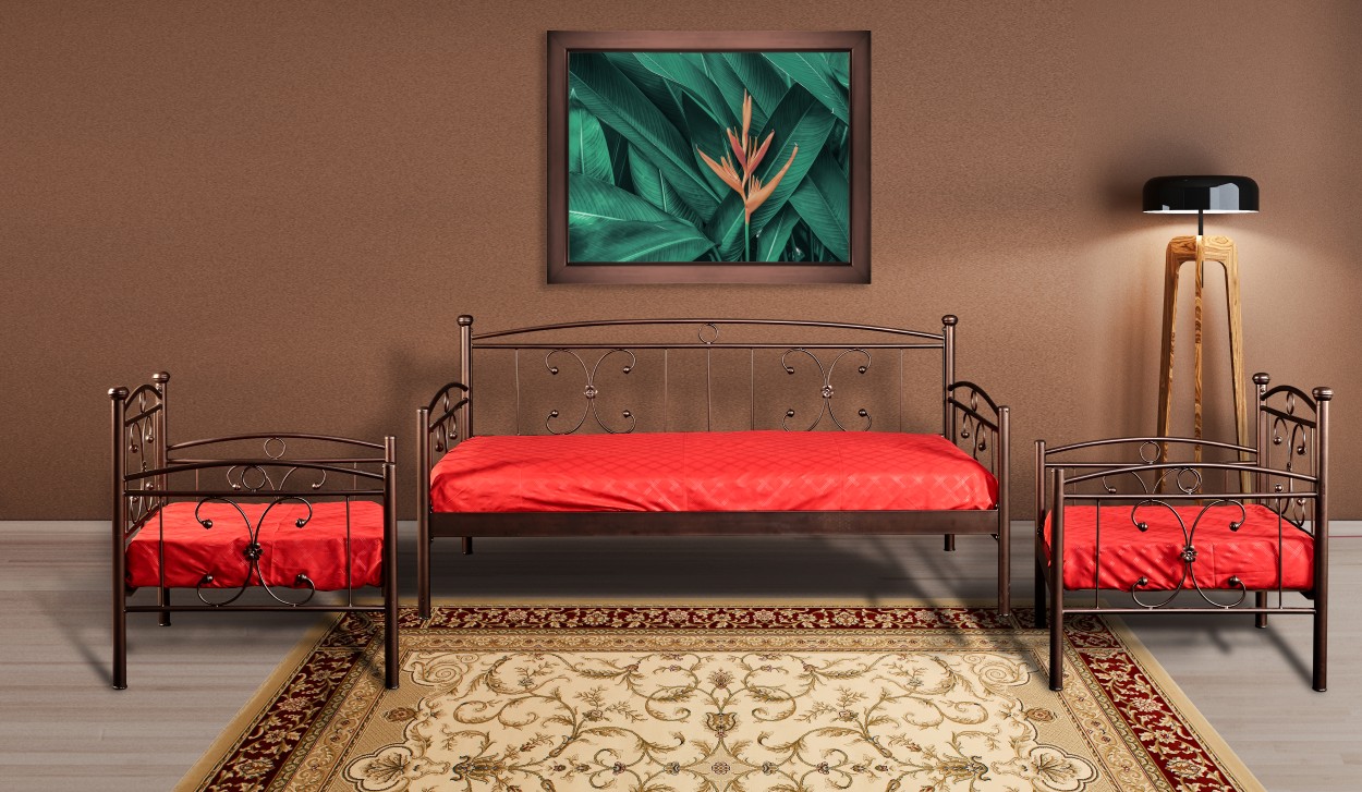 Μεταλλικός καναπές-κρεβάτι από μασίφ σίδερο, ιδανικός για καθιστικό, ξενώνα ή επαγγελματικό χώρο. Διαθέτει στιβαρή μασίφ σιδερένια κατασκευή που εξασφαλίζει υψηλή αντοχή και σταθερότητα, ενώ ο κομψός σχεδιασμός του επιτρέπει τη χρήση τόσο ως καναπές όσο και ως μονό κρεβάτι.