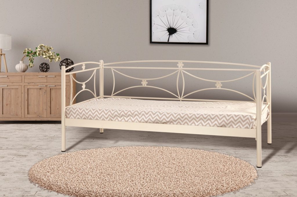 Σιδερένιος καναπές-κρεβάτι με minimal και μοντέρνο σχεδιασμό. Η πλάτη και τα πλαϊνά αποτελούνται από καθαρές ευθείες γραμμές και γεωμετρικό μοτίβο, δημιουργώντας ένα διαχρονικό και κομψό αποτέλεσμα. Η ανθεκτική μεταλλική κατασκευή προσφέρει σταθερότητα και άνεση, ιδανικό για καθημερινή χρήση ως καναπές ή μονό κρεβάτι.