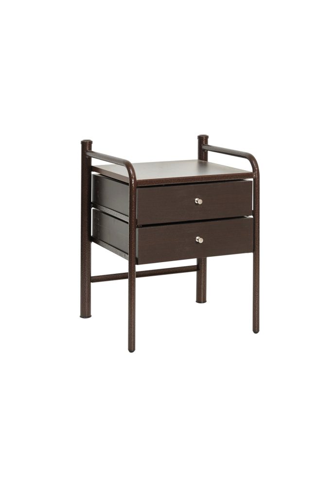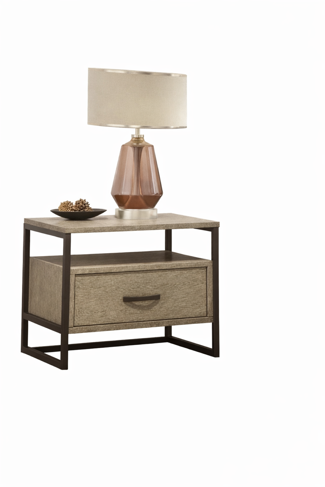 Μοντέρνο κομοδίνο με μεταλλικό σκελετό και minimal αισθητική, που ξεχωρίζει για τον ιδιαίτερο σχεδιασμό του. Διαθέτει πρακτικό συρτάρι και ανοιχτό ράφι για εύκολη οργάνωση και αποθήκευση. Η ελαφριά αλλά στιβαρή κατασκευή του προσφέρει κομψότητα και λειτουργικότητα δίπλα στο κρεβάτι.