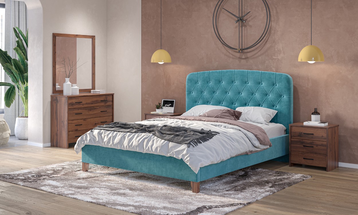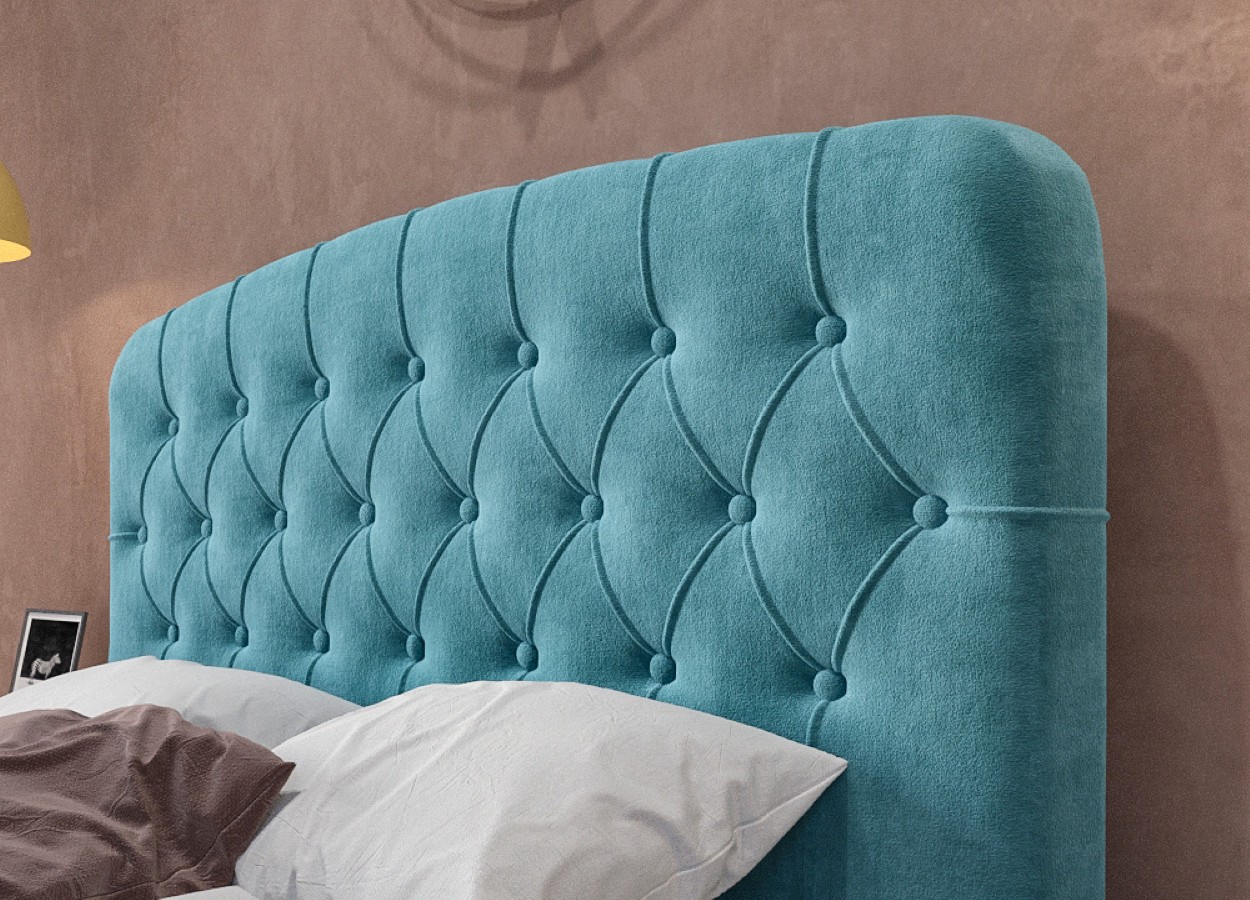 Κρεβάτι με πλήρως επενδυμένη υφασμάτινη κατασκευή και εντυπωσιακό καπιτονέ κυκλικό κεφαλάρι που προσφέρει πολυτελή αίσθηση και άνεση. Η στιβαρή δομή και ο μοντέρνος σχεδιασμός του το καθιστούν ιδανική επιλογή για κάθε σύγχρονο υπνοδωμάτιο.
