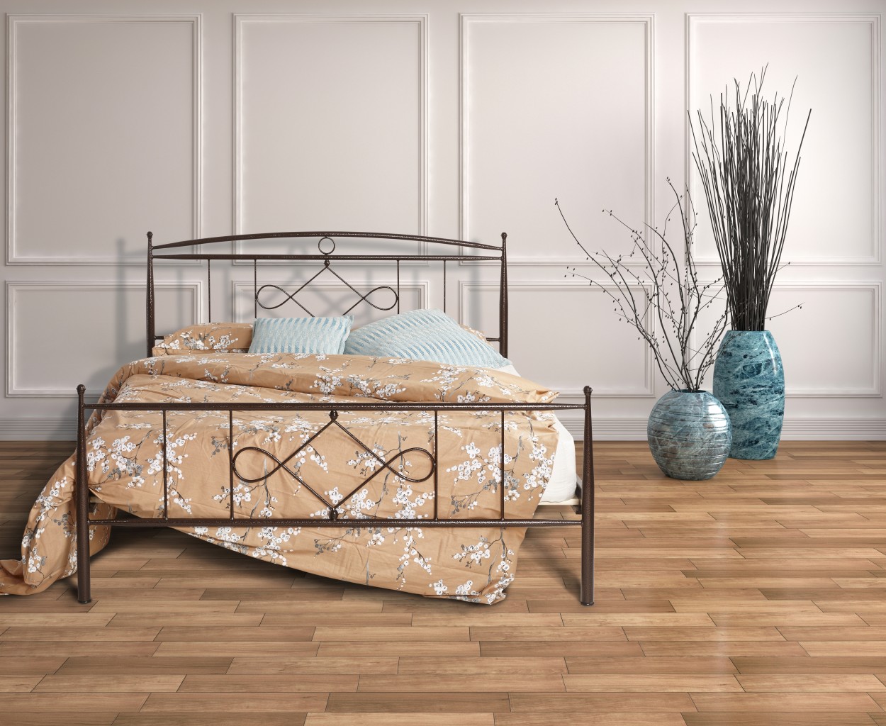Σιδερένιο κρεβάτι από μασίφ σίδερο με κομψό και διαχρονικό σχεδιασμό. Το κεφαλάρι και το ποδαρικό διαθέτουν καμπύλες και χιαστί γραμμές με διακριτικά διακοσμητικά στοιχεία, δημιουργώντας ένα εκλεπτυσμένο και ρομαντικό ύφος. Η κατασκευή από μασίφ σίδερο εξασφαλίζει εξαιρετική αντοχή και σταθερότητα, αποτελώντας ιδανική επιλογή για ένα καλαίσθητο υπνοδωμάτιο.