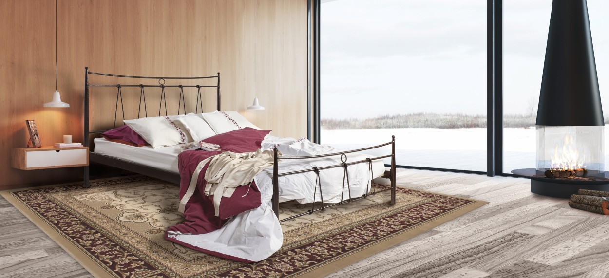 Σιδερένιο κρεβάτι από μασίφ σίδερο με κομψό και εκλεπτυσμένο σχεδιασμό. Το κεφαλάρι και το ποδαρικό διαθέτουν λεπτές καμπύλες γραμμές και συμμετρικά μεταλλικά στοιχεία, προσδίδοντας διαχρονικό και ρομαντικό χαρακτήρα. Η κατασκευή από μασίφ σίδερο εξασφαλίζει υψηλή αντοχή και σταθερότητα, αποτελώντας ιδανική επιλογή για ένα καλαίσθητο και ζεστό υπνοδωμάτιο.