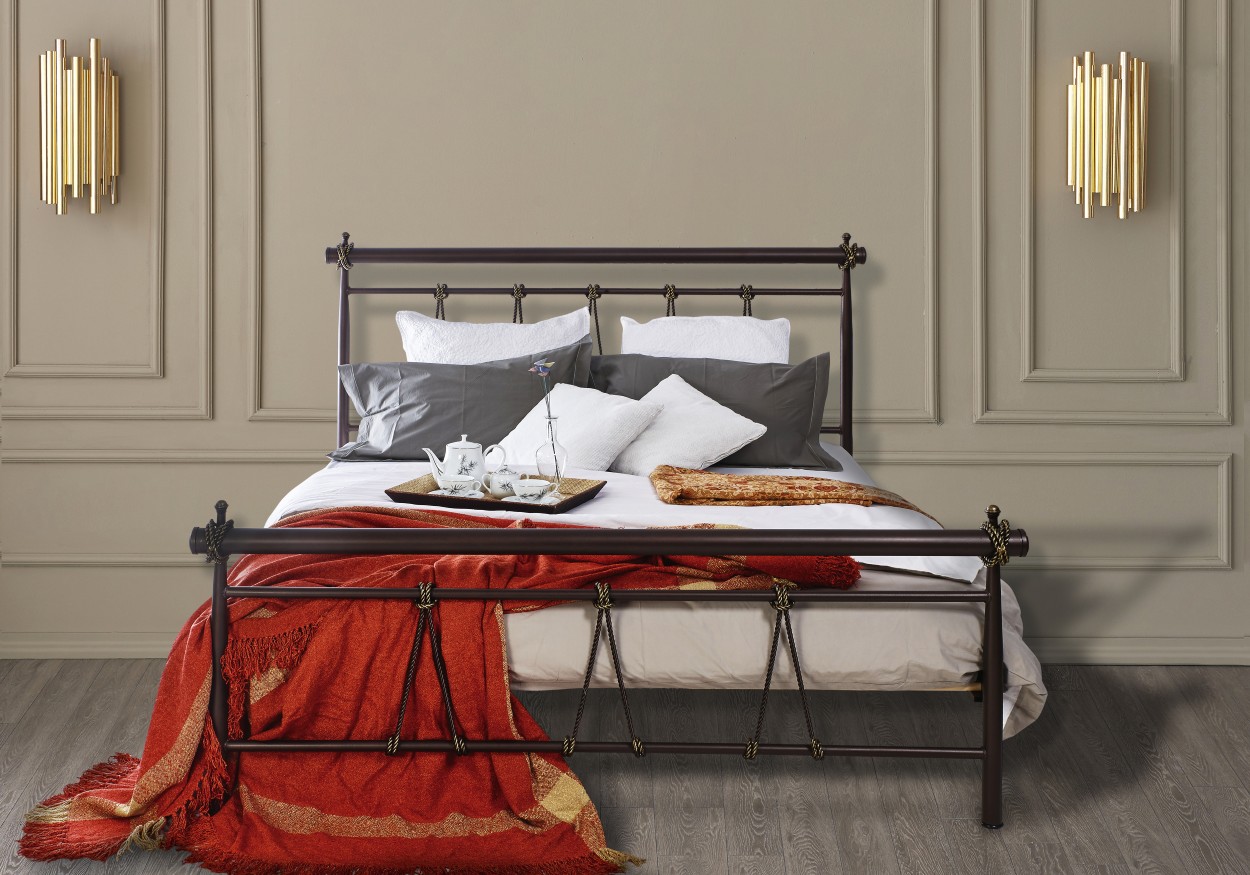 Σιδερένιο κρεβάτι από μασίφ σίδερο με κομψό και εκλεπτυσμένο σχεδιασμό. Το κεφαλάρι και το ποδαρικό διαθέτουν ευθείες γραμμές και διακριτικά δεσίματα από μεταλλικά στοιχεία, προσδίδοντας έναν ιδιαίτερο, διαχρονικό χαρακτήρα. Η μασίφ μεταλλική κατασκευή εξασφαλίζει υψηλή αντοχή, στιβαρότητα και σταθερότητα, αποτελώντας ιδανική επιλογή για ένα καλαίσθητο υπνοδωμάτιο.