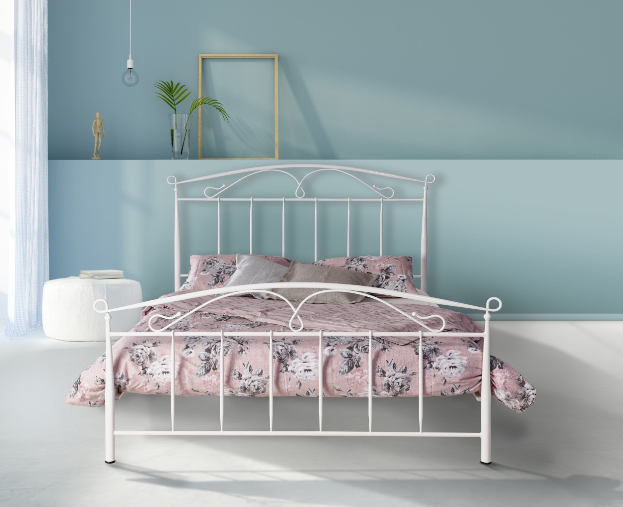 Σιδερένιο κρεβάτι από μασίφ σίδερο με κομψό και ανάλαφρο σχεδιασμό. Το κεφαλάρι και το ποδαρικό διαθέτουν καμπύλες γραμμές και διακριτικά διακοσμητικά στοιχεία, που προσδίδουν ρομαντικό χαρακτήρα και φωτεινή αισθητική στον χώρο. Η μασίφ μεταλλική κατασκευή εξασφαλίζει υψηλή αντοχή, σταθερότητα και στιβαρότητα, αποτελώντας ιδανική επιλογή για ένα καλαίσθητο και διαχρονικό υπνοδωμάτιο.