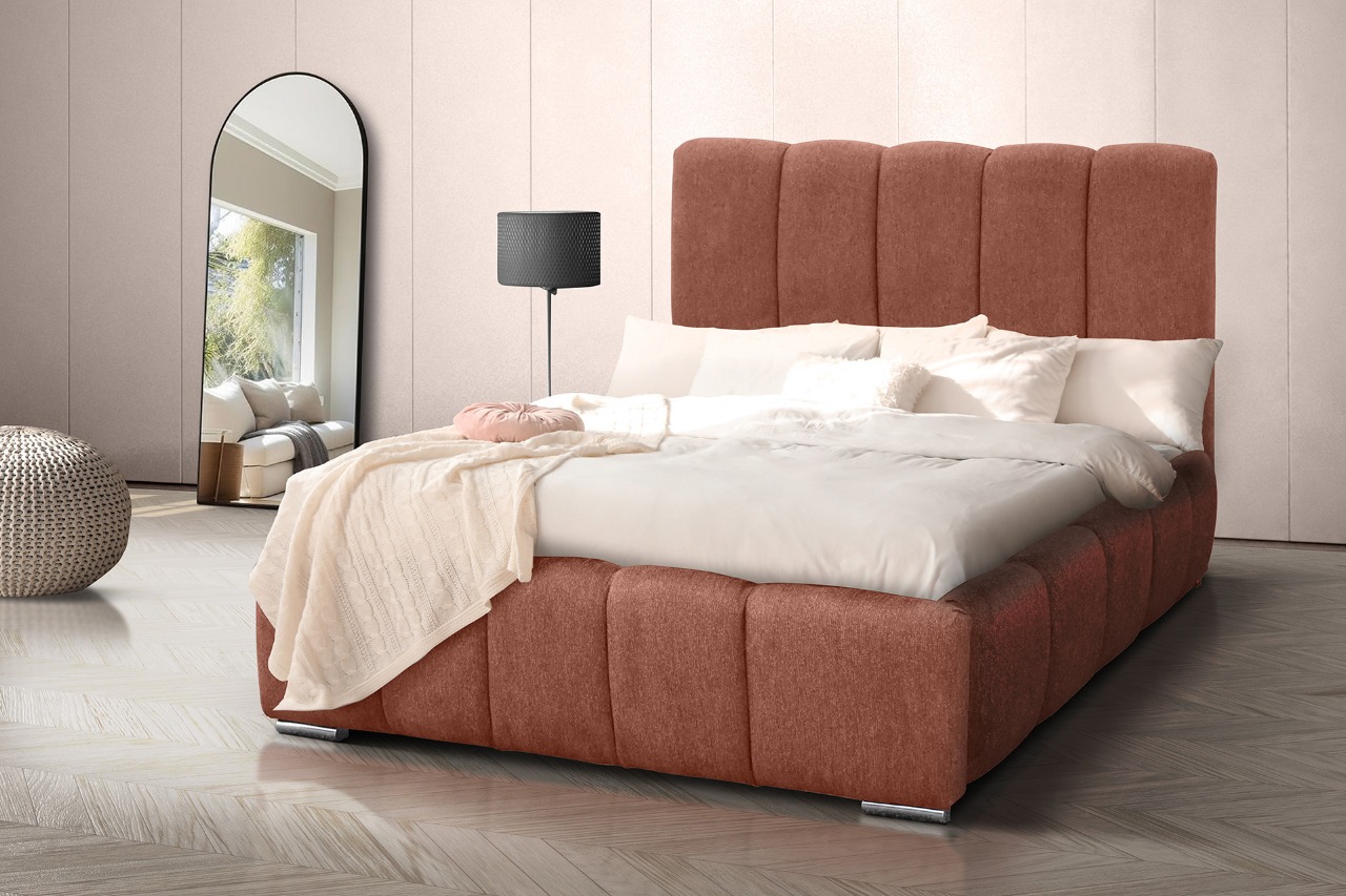 Κρεβάτι με μοντέρνο, επενδυμένο σχεδιασμό και έντονο χαρακτήρα, που προσφέρει αίσθηση πολυτέλειας και άνεσης στον χώρο. Διατίθεται σε πολλούς χρωματισμούς. Στην τιμή δεν περιλαμβάνονται τάβλες ή τελάρο.