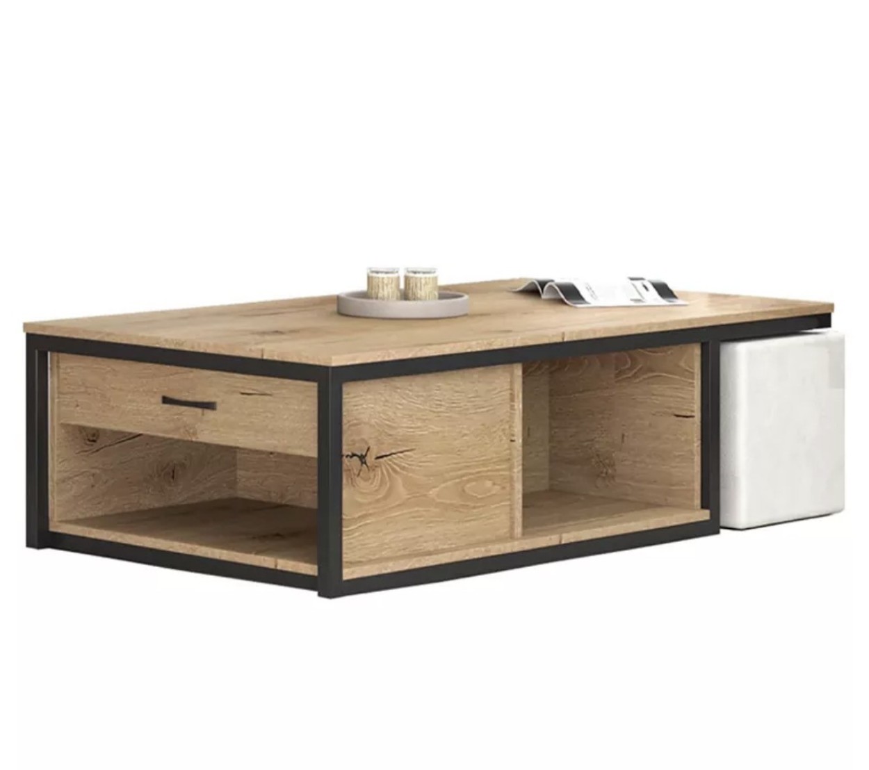 Τραπεζάκι σαλονιού με αποθηκευτικό χώρο – φυσικό χρώμα & μοντέρνος σχεδιασμόςΈνα ξεχωριστό τραπεζάκι σαλονιού που συνδυάζει φυσική αισθητική και πρακτική λειτουργικότητα. Η ζεστή απόχρωση ξύλου δένει αρμονικά με το σκούρο πλαίσιο, δημιουργώντας ένα σύγχρονο έπιπλο που αναβαθμίζει κάθε καθιστικό. Διαθέτει ευρύχωρα ράφια και συρτάρι για οργανωμένη αποθήκευση βιβλίων, περιοδικών και διακοσμητικών.