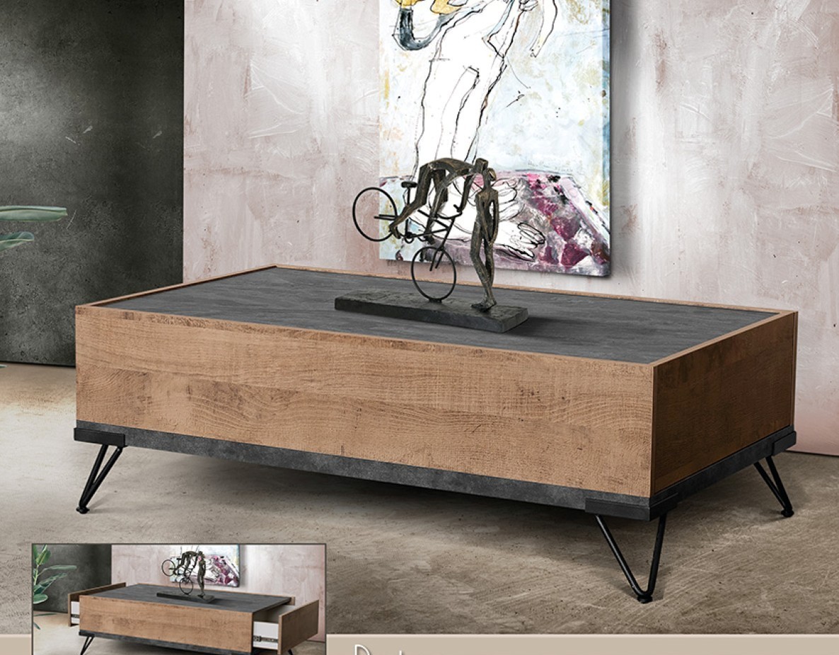 Τραπεζάκι σαλονιού σύγχρονου–industrial σχεδιασμού, με έντονη γεωμετρική μορφή και δυναμικό χαρακτήρα. Ο κλειστός όγκος του προσφέρει πρακτικό αποθηκευτικό χώρο, ιδανικό για την τακτοποίηση αντικειμένων καθημερινής χρήσης, διατηρώντας τον χώρο οργανωμένο και κομψό. Η στιβαρή κατασκευή και η ανυψωμένη βάση προσδίδουν ελαφρότητα στο σύνολο, ενώ ο λιτός σχεδιασμός το καθιστά ιδανικό για μοντέρνους και minimal χώρους σαλονιού.