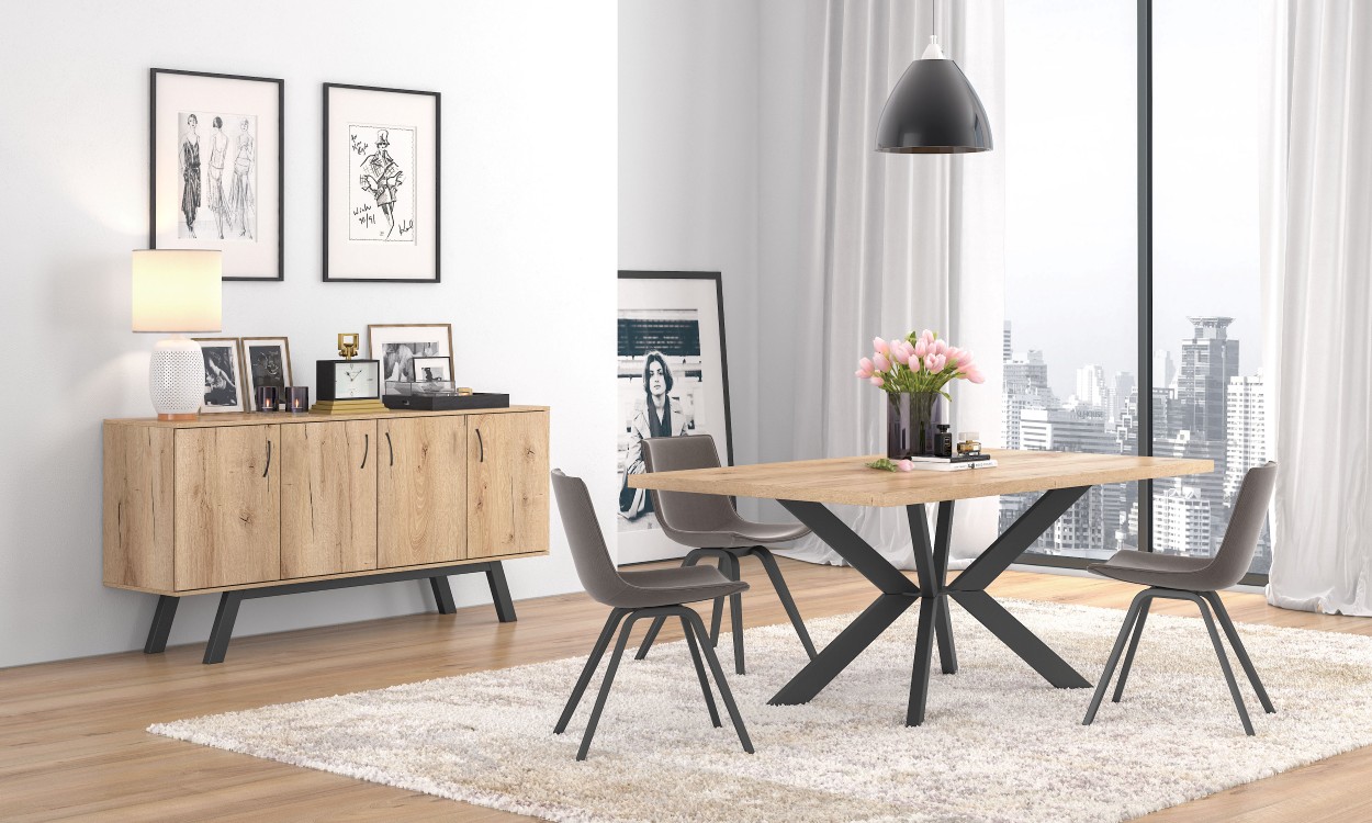 Κομψό τραπέζι τραπεζαρίας με σύγχρονο σχεδιασμό και σταθερή κατασκευή. Η ευρύχωρη επιφάνειά του προσφέρει άνεση για καθημερινά γεύματα αλλά και για επίσημες περιστάσεις. Μια διαχρονική επιλογή που αναβαθμίζει κάθε τραπεζαρία.
